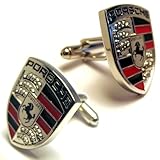- Porsche Large Silver Logo Automotive Car Cufflinks